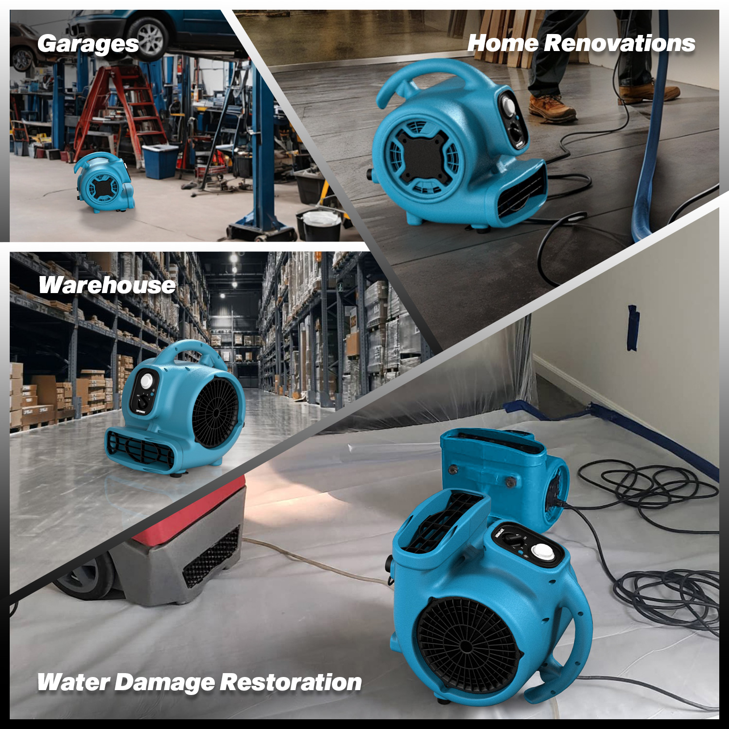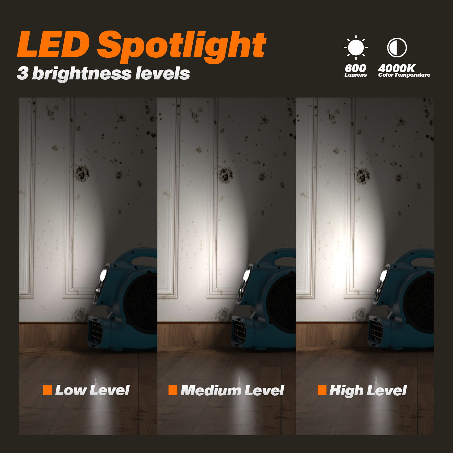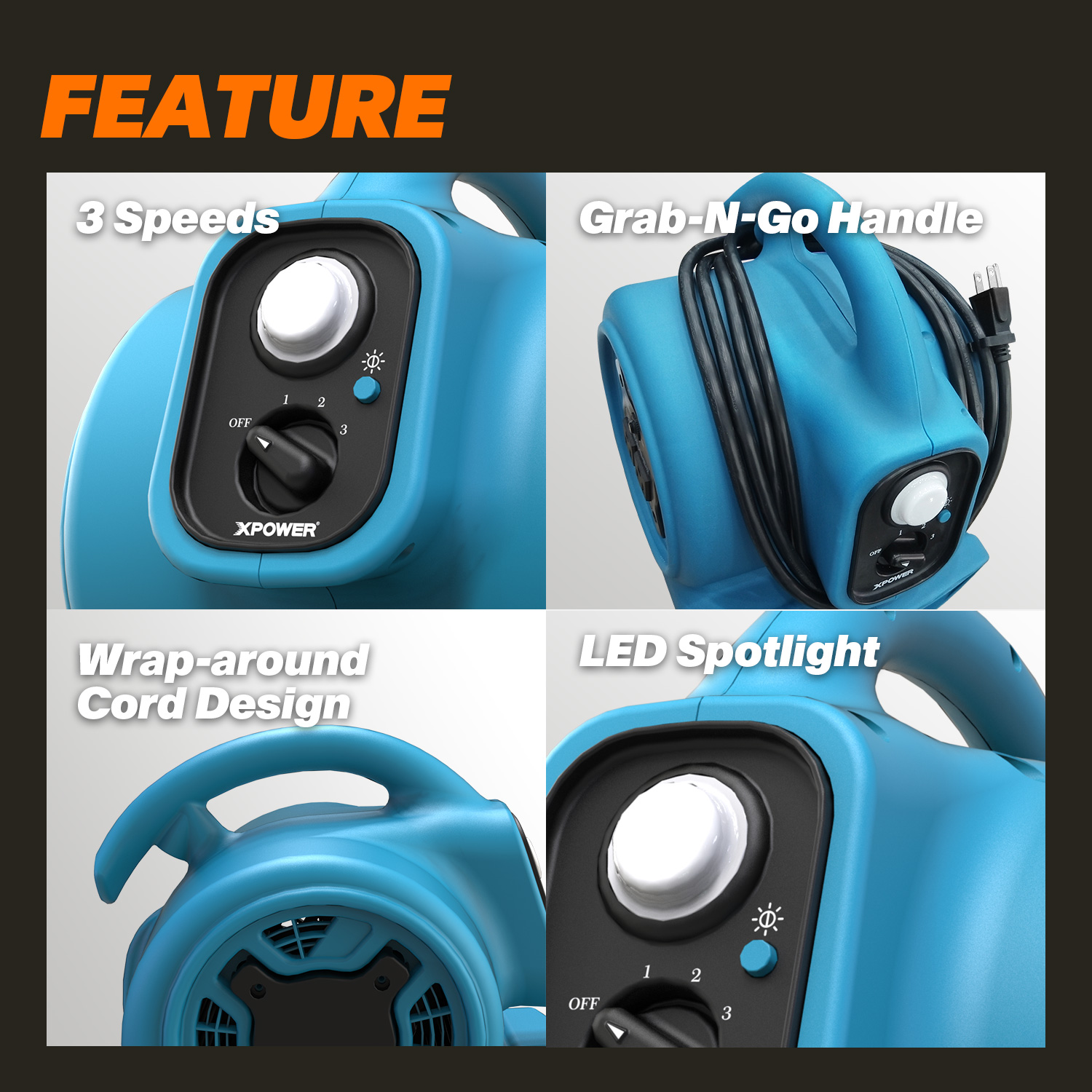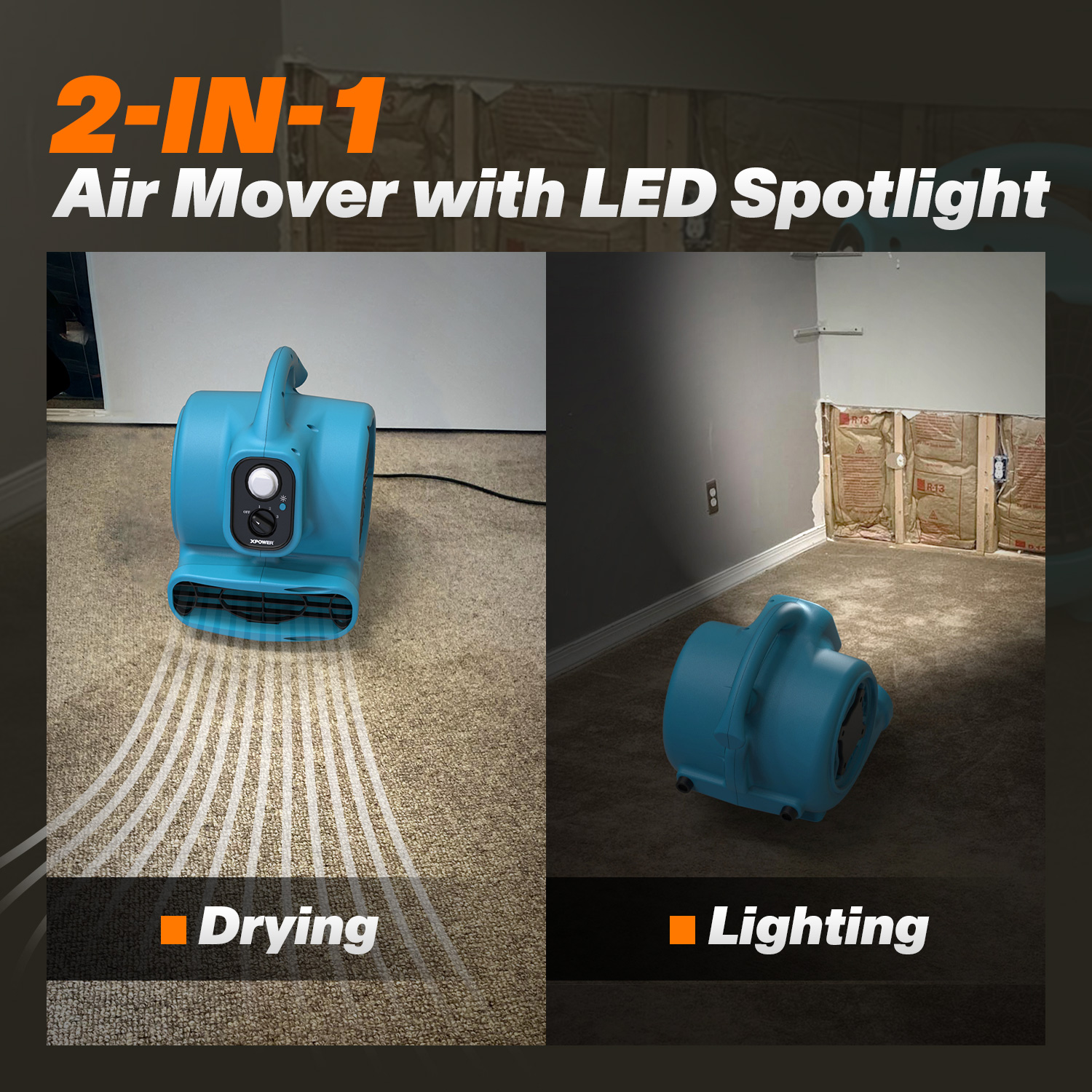 Le XPOWER P-230L 2-en-1 (séchage et éclairage) mini ventilateur d’air avec spot LED est une solution puissante, compacte et extrêmement polyvalente pour un séchage rapide et un éclairage précis dans les espaces difficiles d’accès. Grâce à son spot LED intégré de 600 lumens avec 3 niveaux de luminosité, cet appareil assure non seulement un flux d’air efficace, mais éclaire également la zone de travail pour une meilleure visibilité et productivité. Le moteur à induction économe en énergie fournit un débit d’air allant jusqu’à 1200 m³/h, avec 3 vitesses et 4 positions de séchage réglables. L’ensemble est logé dans un boîtier en polypropylène à la fois léger et robuste. Le P-230L est idéal pour les professionnels comme pour les particuliers, et constitue la solution parfaite pour le séchage, la ventilation et les travaux de restauration avec éclairage intégré.