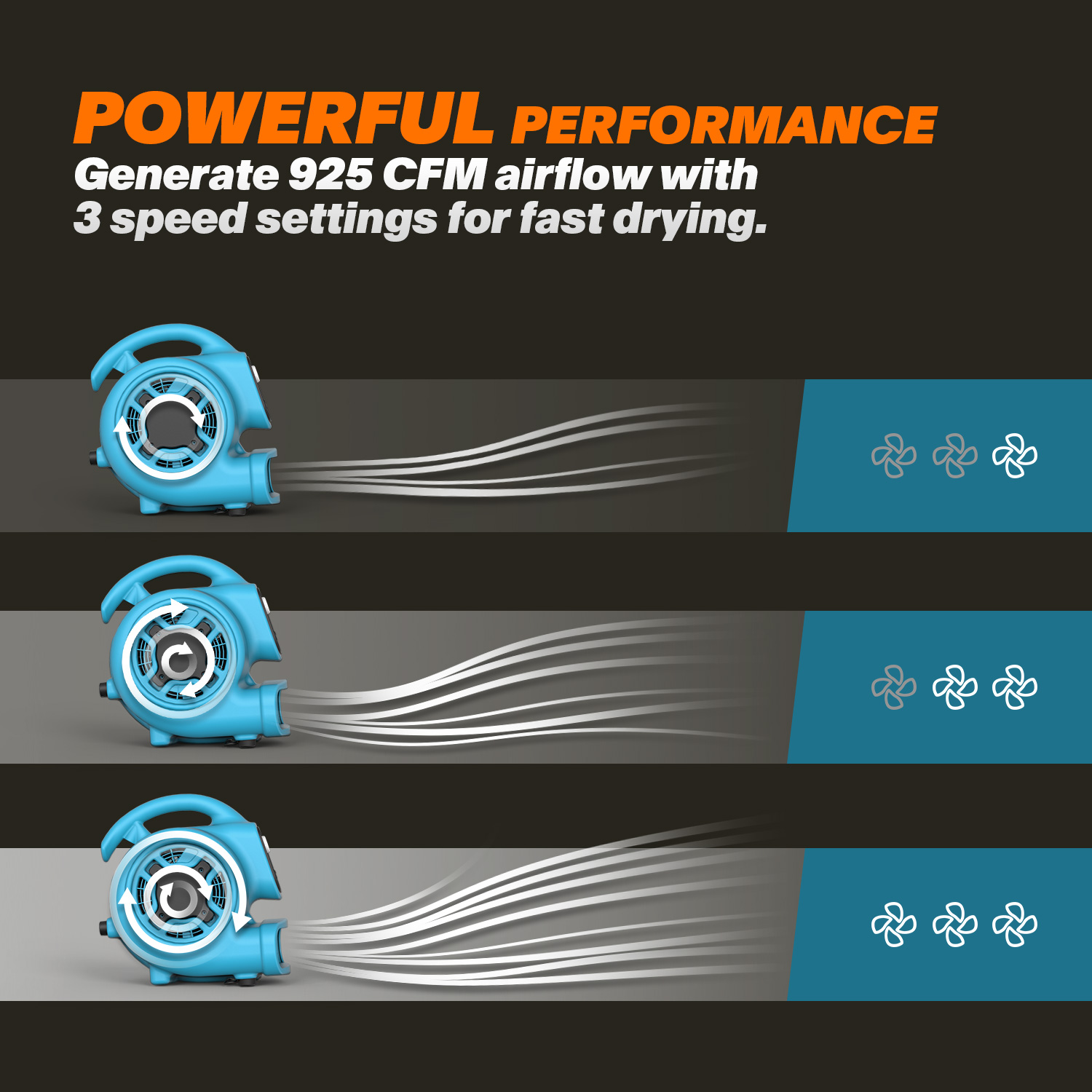 Le XPOWER P-230L 2-en-1 mini ventilateur d’air avec spot LED est une solution puissante et polyvalente pour sécher, ventiler et travailler efficacement dans des espaces peu éclairés. Grâce à la combinaison d’un flux d’air puissant et d’un éclairage intégré, cet appareil est idéal aussi bien pour un usage professionnel que pour les particuliers exigeants. Des performances élevées dans un format compact Malgré ses dimensions compactes, le P-230L offre des performances impressionnantes. Son moteur à induction économe en énergie de 1/4 HP génère un débit d’air allant jusqu’à environ 1570 m³/h (925 CFM) et propose 3 vitesses réglables. Vous pouvez ainsi adapter facilement le flux d’air à chaque situation, de la simple ventilation aux travaux de séchage intensifs. Positions de séchage flexibles L’appareil peut être positionné selon 4 angles différents (0°, 20°, 45° et 90°), ce qui permet de diriger le flux d’air avec précision. Il est parfaitement adapté pour sécher les sols, les murs, les plafonds ainsi que les zones difficiles d’accès comme les vides sanitaires, sous les meubles ou à l’intérieur des véhicules. Spot LED intégré (600 lumens) Ce ventilateur se distingue par son spot LED intégré offrant une puissance lumineuse de 600 lumens avec 3 niveaux d’intensité. Il permet de travailler efficacement même dans des environnements sombres, sans éclairage supplémentaire. Idéal pour les rénovations, garages, entrepôts ou interventions après dégâts des eaux. Robuste, léger et pratique Le boîtier est fabriqué en polypropylène résistant aux chocs, garantissant une longue durée de vie et une grande fiabilité, même en utilisation intensive. En parallèle, l’appareil reste léger (environ 4,3 kg), ce qui facilite son transport. De plus, le P-230L est empilable jusqu’à 4 unités, pour un rangement et un transport optimisés. Conception facile à utiliser L’utilisation est simple et intuitive : Sélecteur rotatif avec 3 vitesses de ventilation Bouton de contrôle de l’éclairage LED (faible, moyen, élevé, arrêt) Poignée robuste pour un transport facile Câble d’alimentation d’environ 3 mètres avec système de rangement pratique Applications polyvalentes Le XPOWER P-230L convient à de nombreuses utilisations : Séchage des sols et des tapis Restauration après dégâts des eaux et humidité Ventilation de petits espaces Utilisation dans les garages, ateliers et entrepôts Séchage de véhicules et d’intérieurs Projets de rénovation et de construction Le XPOWER P-230L est une solution compacte mais puissante qui combine séchage et éclairage en un seul appareil. Grâce à son flux d’air performant, ses positions ajustables et son éclairage LED intégré, il constitue un choix idéal pour les professionnels comme pour les utilisateurs exigeants.